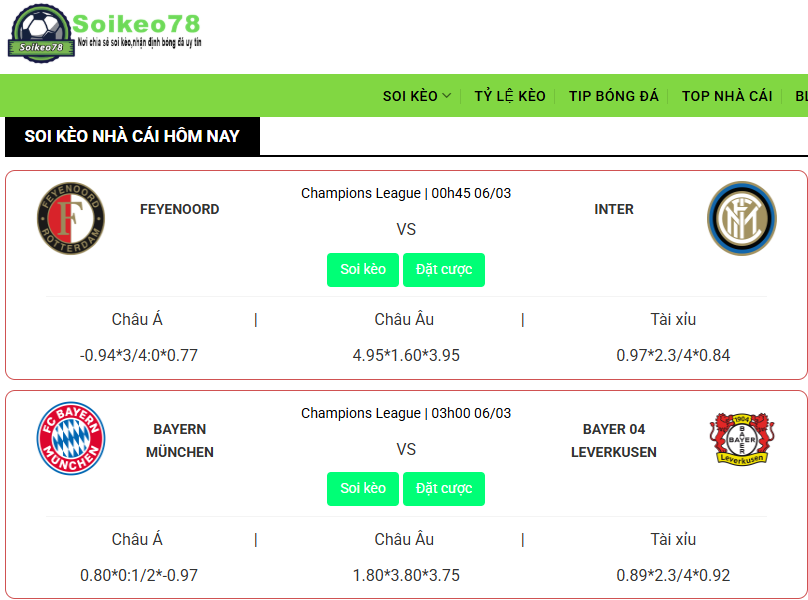 Kèo nhà cái – Nhận định , dự đoán ,tỷ lệ kèo bóng đá , soi kèo nhà cái hôm nay xanh chín tại webstie soikeo78