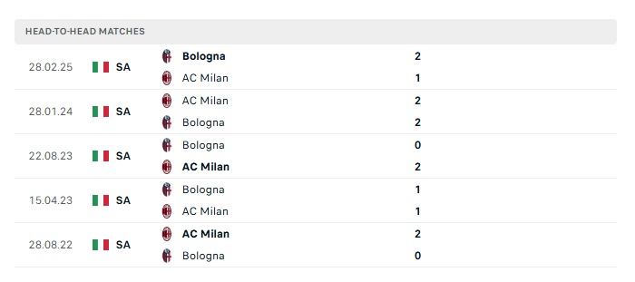- Kèo tỷ số H2 AC Milan vs Bologna: 0-0