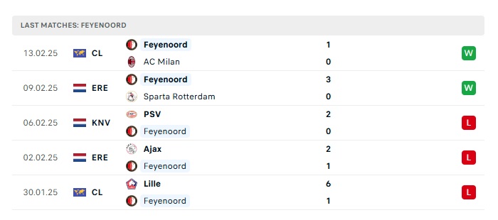 Dù áp lực là vậy nhưng AC Milan vẫn có một điểm tựa nằm ở phong độ thi đấu của họ nhỉnh hơn đối thủ. Cụ thể thì AC Milan đang có 4 chiến thắng, hòa 1 và chỉ thua 2 trong 7 trận đấu gần nhất của mình. Trong khi đó thì Feyenoord đang chỉ thắng 3 và thua 3 trong 6 trận đấu gần đây nhất. Như vậy thì nếu thực sự quyết tâm thi đấu, Milan hoàn toàn đủ khả năng thắng cách biệt đối thủ hoặc ít nhất vẫn là 1 chiến thắng có cách biệt tối thiểu.