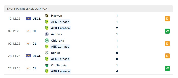 • Phong độ gần đây AEK Larnaca