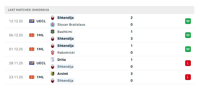 • Phong độ gần đây Shkendija