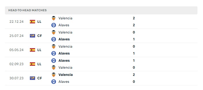 - Kèo tỷ số H2 Alaves vs Valencia: 0-0