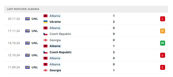 • Phong độ gần đây Albania