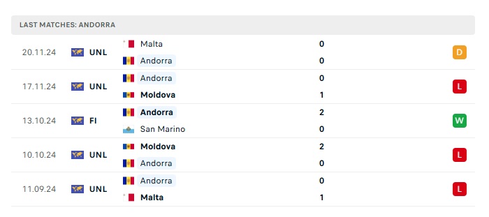 • Phong độ gần đây Andorra