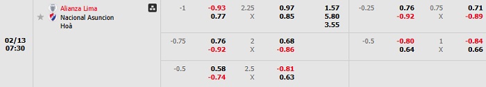Bảng tỷ lệ kèo bóng đá Alianza Lima vs Nacional Asuncion