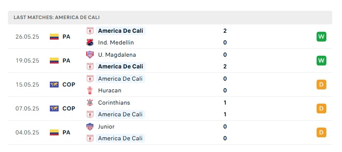 - Phong độ gần đây America Cali