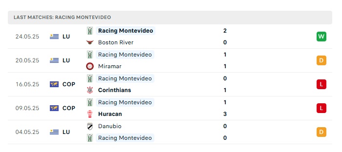 - Phong độ gần đây Racing Montevideo