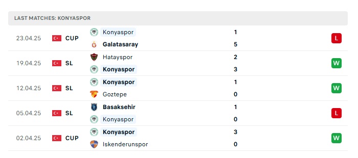 - Phong độ gần đây Konyaspor