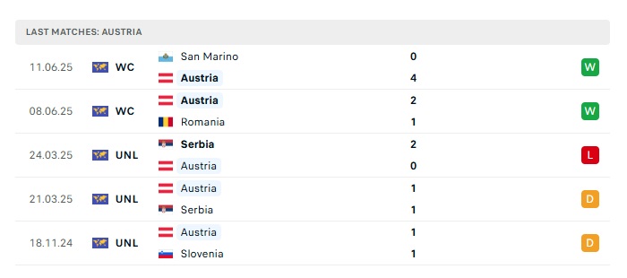 - Phong độ gần đây Áo