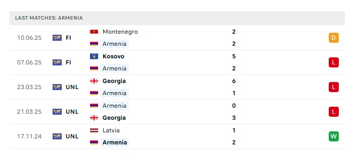 • Phong độ gần đây Armenia