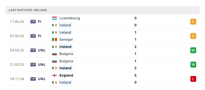 • Phong độ gần đây Ireland