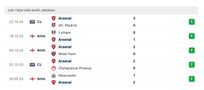 • Phong độ gần đây Arsenal