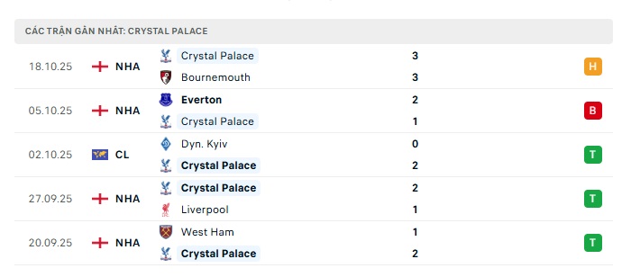 • Phong độ gần đây Crystal Palace