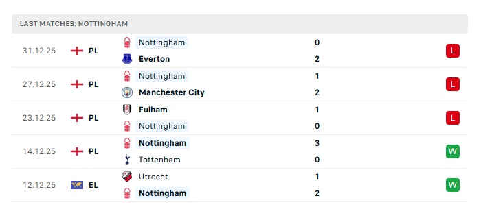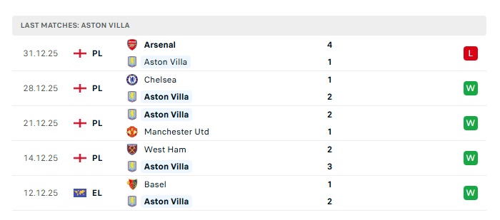 Phong độ gần đây Aston Villa vs Nottingham Forest