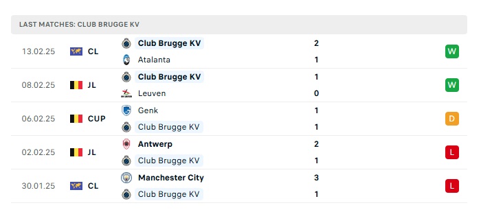 - Phong độ gần đây Club Brugge