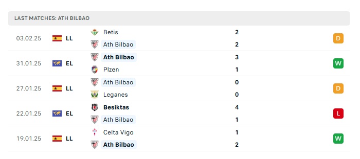 • Phong độ gần đây Athletic Bilbao
