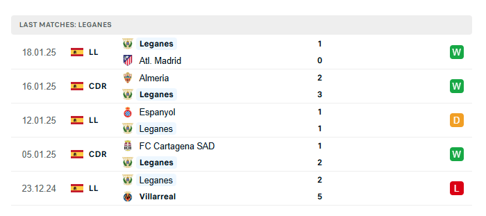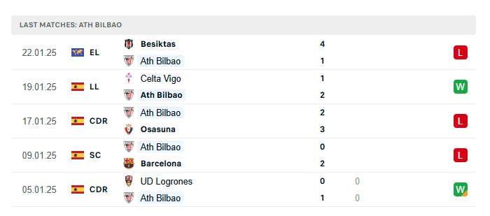 Phong độ gần đây Athletic Bilbao vs Leganes
