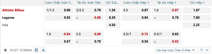 Soi kèo châu Á, kèo Athletic Bilbao vs Leganes