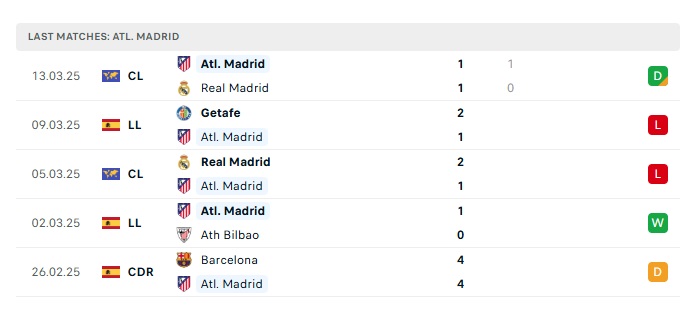 - Phong độ gần đây Atletico Madrid
