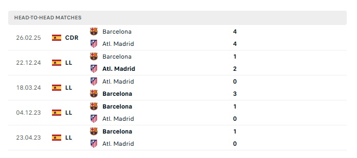 Lịch sử đối đầu Atletico Madrid vs Barcelona