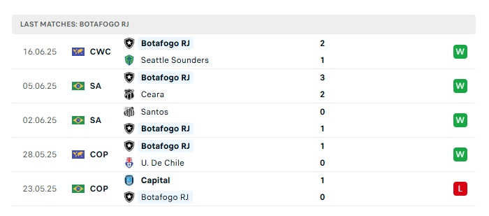 Hiện tại, phong độ của Atletico Madrid đang có phần thua kém đôi chút so với đối thủ Botafogo. Trong 7 trận đấu gần nhất của Atletico Madrid, họ đã thắng 4, hòa 1 và còn lại là 2 thất bại. Trong khi đó thì Botafogo đang có 5 chiến thắng, 1 hòa và 1 thua trong 7 trận gần nhất. Do đó, chỉ cần đại diện La Liga thi đấu đúng sức, 3 điểm không phải là quá khó với họ.