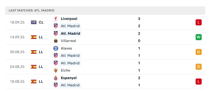 Phong độ gần đây Atletico Madrid vs Rayo Vallecano
