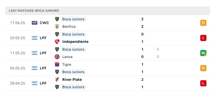 - Phong độ gần đây Boca Juniors