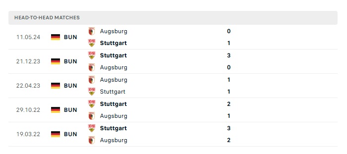 Lịch sử đối đầu Augsburg vs Stuttgart