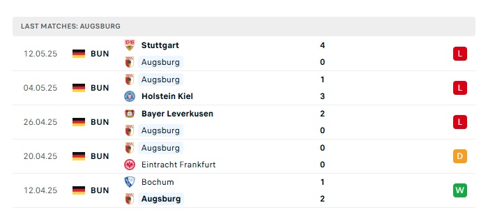 - Phong độ gần đây Augsburg