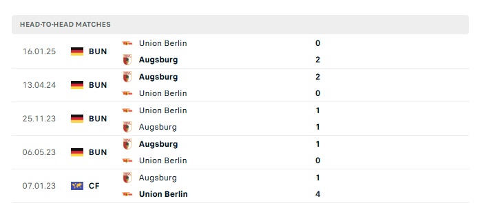 Lịch sử đối đầu Augsburg vs Union Berlin