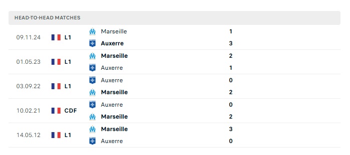 - Kèo tỷ số H2 Auxerre vs Marseille: 0-3