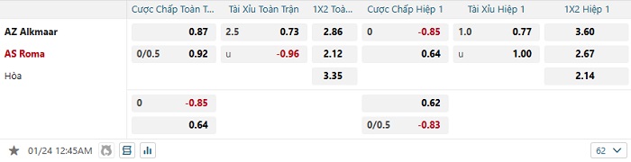 Soi kèo châu Á, kèo AZ Alkmaar vs Roma
