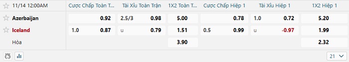 Soi kèo châu Á, kèo Azerbaijan vs Iceland