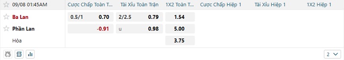Bảng tỷ lệ kèo nhà cái Ba Lan vs Phần Lan