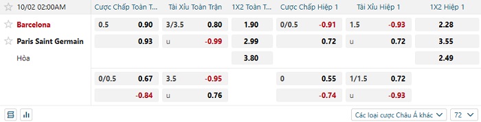 Soi kèo châu Á, kèo Barcelona vs PSG