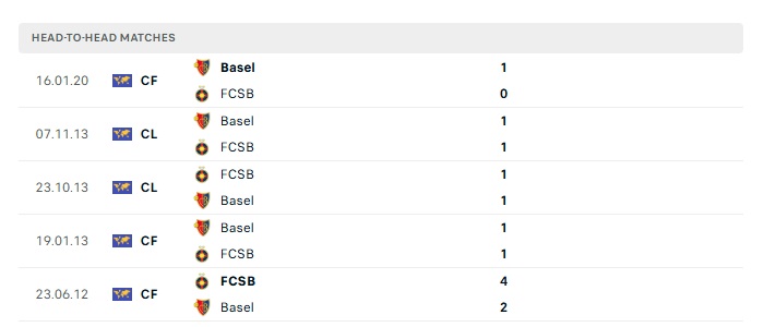 Lịch sử đối đầu Basel vs Steaua Bucuresti