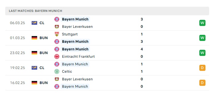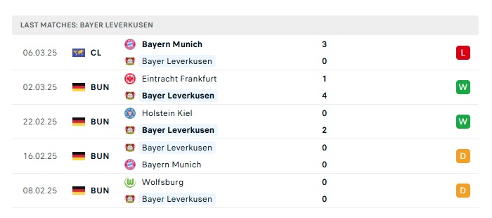 Phong độ gần đây Bayer Leverkusen vs Bayern Munich