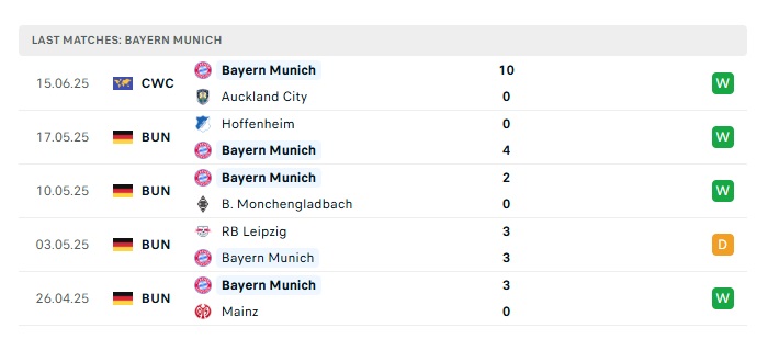 • Phong độ gần đây Bayern Munich