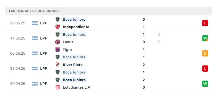 • Phong độ gần đây Boca Juniors