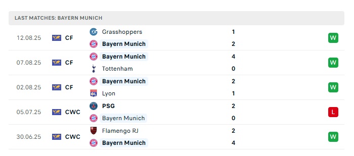 - Phong độ gần đây Bayern Munich