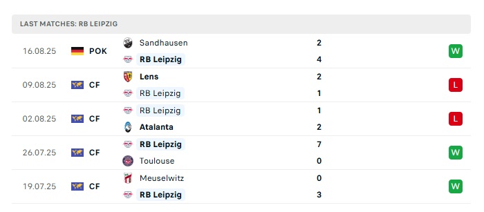 - Phong độ gần đây Leipzig