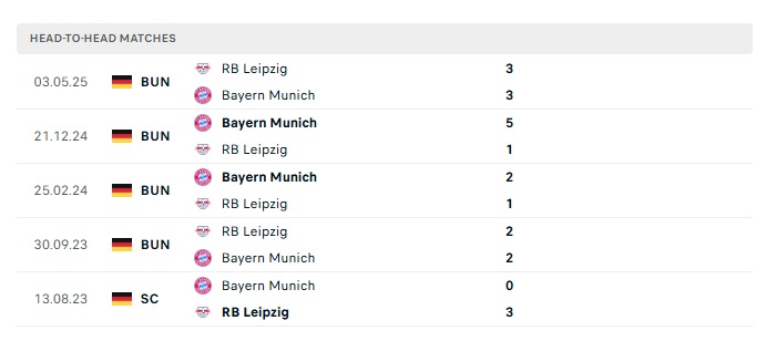 Lịch sử đối đầu Bayern Munich vs Leipzig