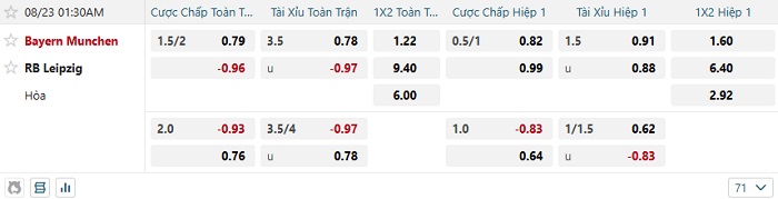 Bảng tỷ lệ kèo nhà cái Bayern Munich vs Leipzig