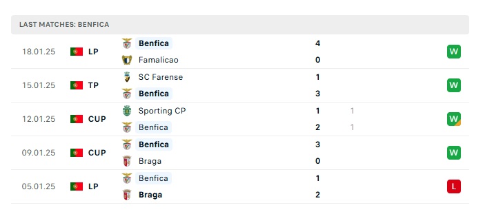 - Phong độ gần đây Benfica
