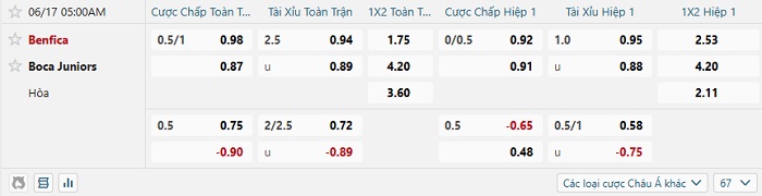 Soi kèo châu Á, kèo Benfica vs Boca Juniors