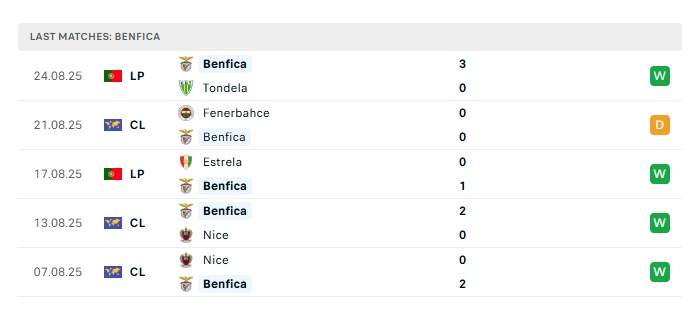 Theo ghi nhận từ các chuyên gia, phong độ thi đấu của Benfica trong thời gian qua đang rất cao. Tính trong 5 trận gần nhất của Benfica, họ đã bất bại toàn diện với 4 chiến thắng và chỉ hòa 1. Trong khi đó thì Fenerbahce đã có 2 chiến thắng, 2 hòa và thua 1 trong 5 lần ra sân gần nhất. Do đó, các chuyên gia đều tin vào việc đội chủ nhà Benfica sẽ có cho mình 3 điểm một cách trọn vẹn ngày hôm nay.