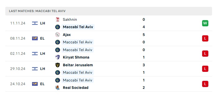 - Phong độ gần đây Maccabi TA