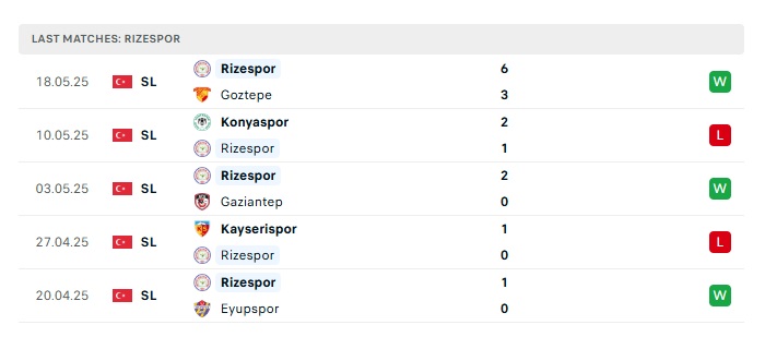 - Phong độ gần đây Rizespor