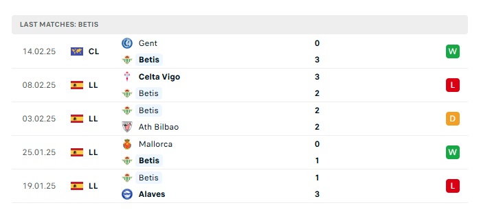 - Phong độ gần đây Betis
