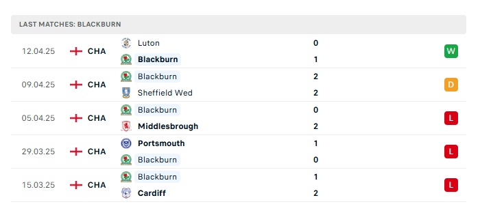 - Phong độ gần đây Blackburn Rovers
